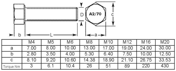 M10x160 Hexagon Set Screws Stainless Steel A2 (304), DIN 933