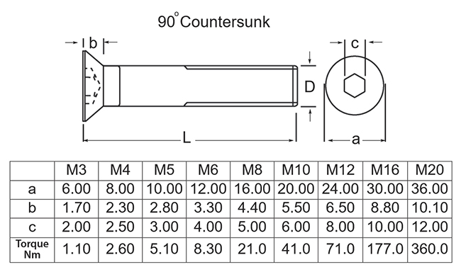 Iso Metric Countersunk Socket Head Screws. Grade 10.9 DIN 7991. Made to specifications ISO 10642