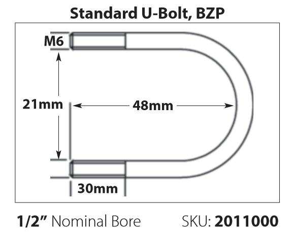 Standard nominal bore "u" bolts, mild steel, bright zinc plated.