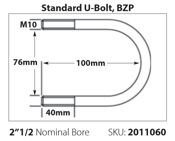 Standard nominal bore "u" bolts, mild steel, bright zinc plated.