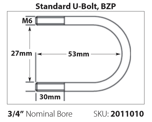 Standard nominal bore "u" bolts, mild steel, bright zinc plated.
